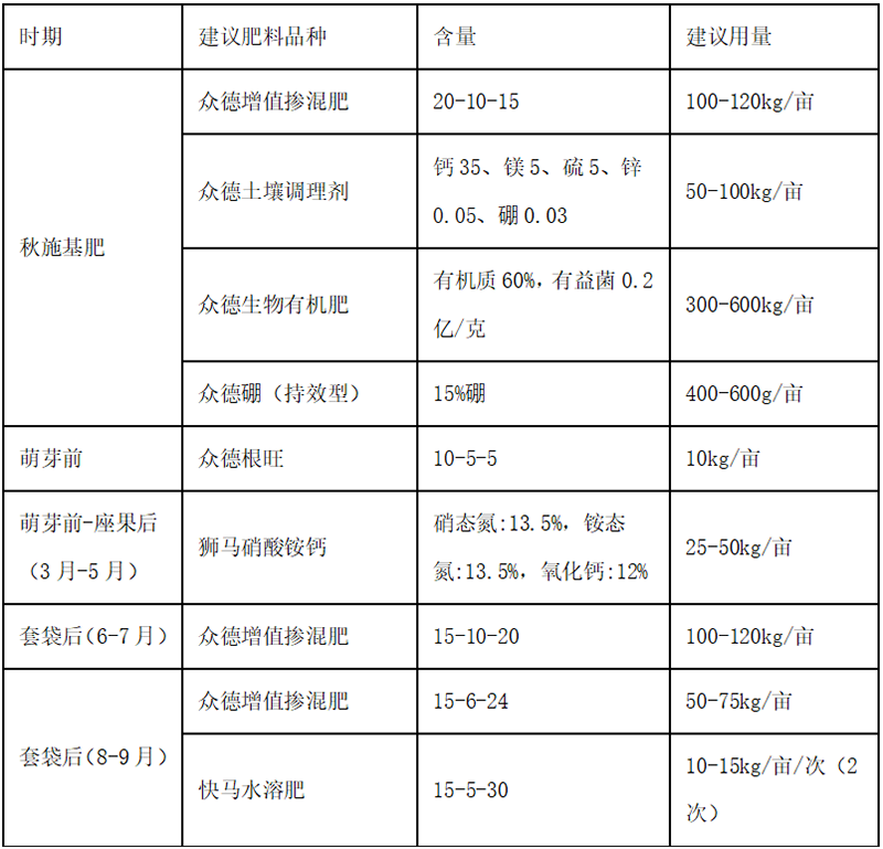 C、磷肥適當(dāng)調(diào)減,重在秋后基肥,其次夏季花芽分化期前。