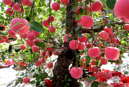 蘋果在生長(zhǎng)期實(shí)際需水一般為180毫米,約為自然降水量1/3,因此年降水量達(dá)到540毫米即可。在4~9月降水量在450毫米以下的地區(qū)則需要灌水,中國(guó)北方降水量分布不均,70~80%集中在7~8月 間,春季則水量不足。在內(nèi)陸降水量少的地區(qū),水量不足,因此在建園選地時(shí),必須考慮到灌溉條件和保墑措施,同時(shí)也要注意雨季排水措施。